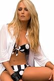 A perfect bikini for the woman who wants a little extra support on top and loves mix/match. The top is an under-wire molded top, with push-up bubbles for extra lift and support, and a feminine polka dot pattern. The top has adjustable front ties between cups, ties around the neck and clasps at the back. The bottom is a fully lined single tie-side hipster that allows you to adjust the fit and has moderate coverage. Please check our size chart to confirm which size is right for you. Made of 91% polyester/9% lycra and 100% polyester lining..../ Poko Pano Poko Dots Black Push-Up American Cut Black S / Swimwear Woman